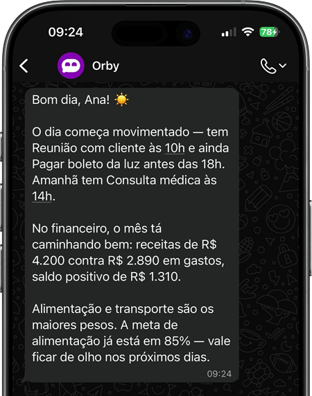 O Orby faz tudo por você, no seu WhatsApp.